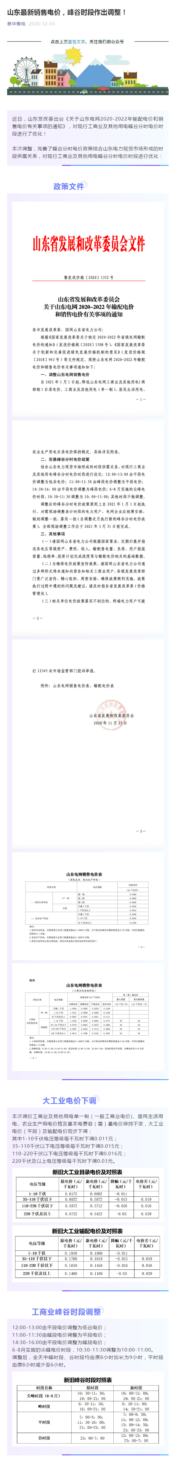 山東發改委出臺《關于山東電網2020-2022年輸配電價和銷售電價有關事項的通知》,對現行工商業及其他用電峰谷分時電價時段進行了優化!